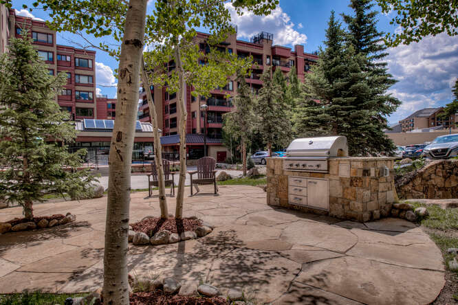 We have barbeque grills at two different locations on the property including on the plaza next to the Wetterhorn building with an incredible view of the Blue River as well as another along a stream next to the Chateaux Building.